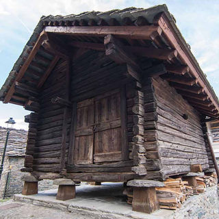 Numerosi “rascard” in legno e pietra costituiscono un'interessante testimonianza dell'architettura contadina semplice e povera di mezzi ma funzionale alle attività agricole. I “rascard” valdostani sono generalmente costruiti con tronchi di pino, abete e larice, squadrati o solo scortecciati, incastrati ad intaglio alle estremità. Tali costruzioni erano adibite un tempo esclusivamente alla conservazione dei cereali e furono pensate in modo da evitare la formazione di umidità e l’attacco dei roditori. Nella frazione Le Perron è rimasto un bell’esempio di “tchoiille”, come chiamato nel patois di Fénis; si tratta di una tipica costruzione rurale in legno di larice, costruita per depositare, seccare e conservare i grani (segale, frumento), senza compartimentazioni all’interno e rialzata dal terreno su appositi “piedi” in pietra e legno. La “tchoiille” era costruita spesso in associazione alla “grandze à batre”, uno spiazzo aperto dove avveniva la battitura dei cereali, al mulino e al forno. Oggi si direbbe che era strutturata l’intera filiera della panificazione! Questo tipo di costruzione già documentata da Tillier nel 1588, è caduta in disuso con l’abbandono della cerealicoltura.